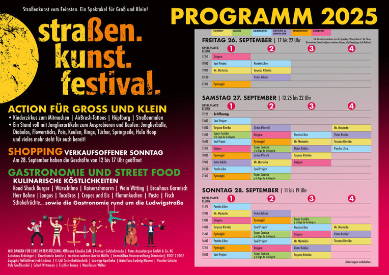 Wir freuen uns schon sehr auf das nächste Straßen.Kunst.Festival in Partenkirchen von 26.-28. September 2025!